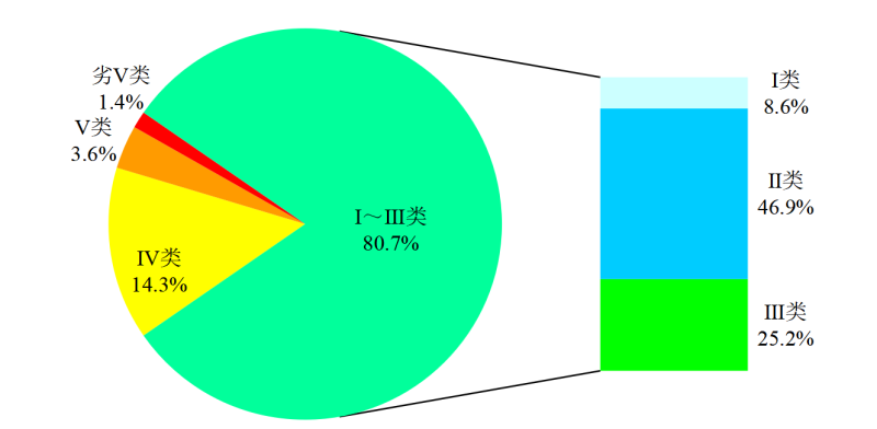 图2  2020年1-5月全国地表水水质类别比例