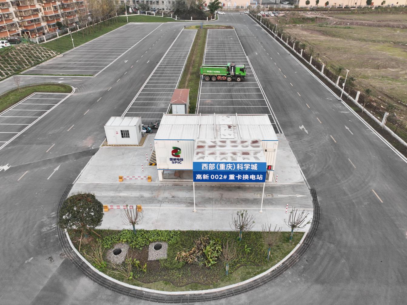 今年7月完工的农马立交“新能源充电+智慧停车示范站”,是重庆市内首个“光+储+充+换+放+检+智慧停车”七位一体示范站,全站装机达到22000kW,建设充电机89台、重卡换电站1座,可满足180辆车同时充电、8辆重卡依次换电。
