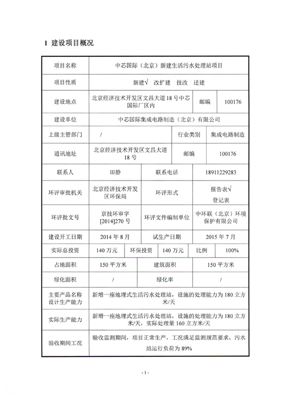 根据《建设项目竣工环境保护验收管理办法》(国家环境保护总局第13号令)和《建设项目环境影响评价政府信息指南》等有关法律法规的规定,现将中芯国际(北京)新建生活污水站项目竣工环保验收监测情况进行公示。具体公示内容见下方相关文件。