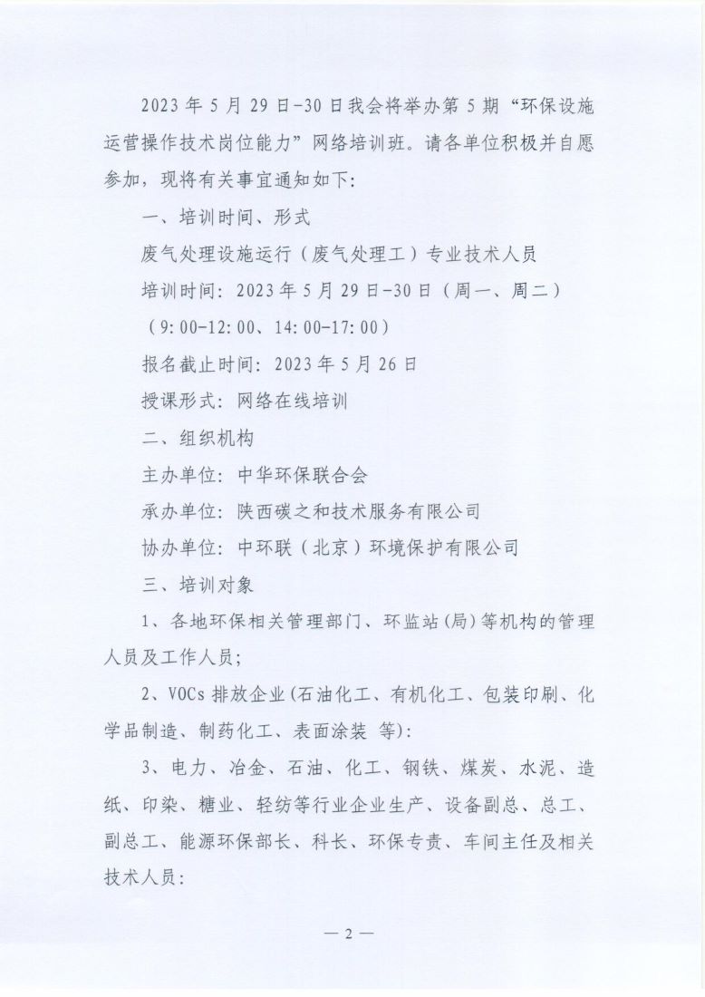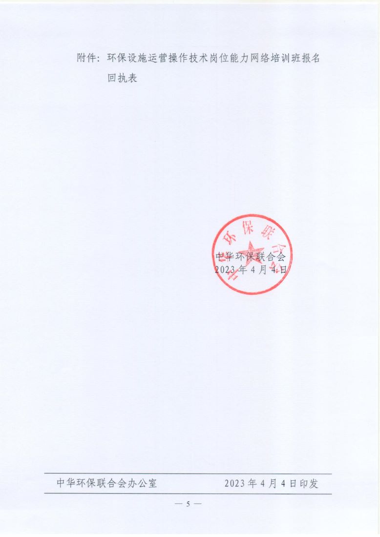 关于举办第5期“环保设施运营操作技术岗位能力”网络培训班的通知