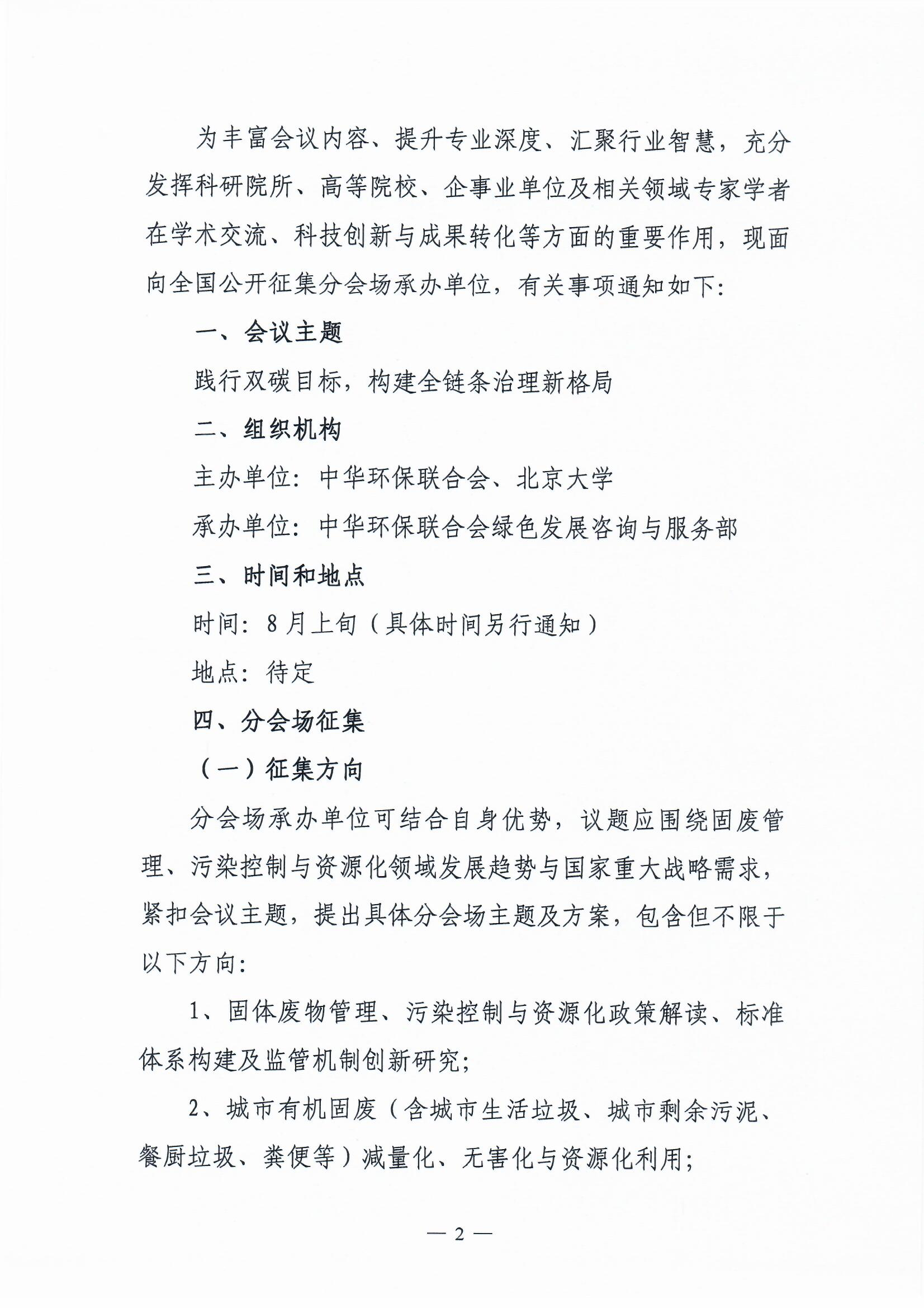 关于征集2026年首届固体废物绿色发展交流会分会场承办单位的通知