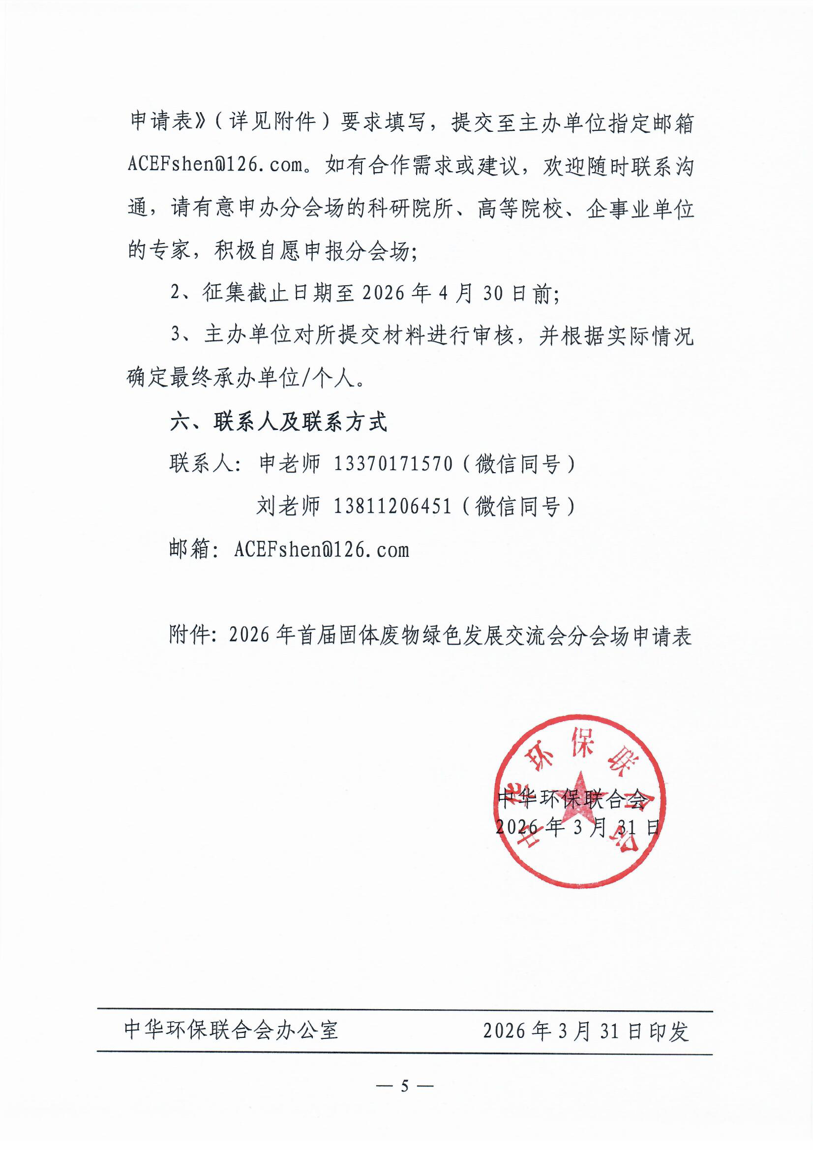 附件: 2026年首届固体废物绿色发展交流会分会场申请表