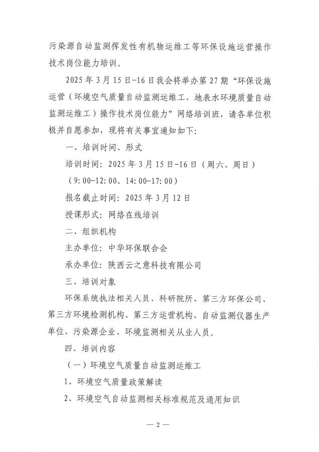 关于举办第27期“环保设施运营(环境空气质量自动监测运维工、地表水环境质量自动监测运维工)操作技术岗位能力”网络培训班的通知