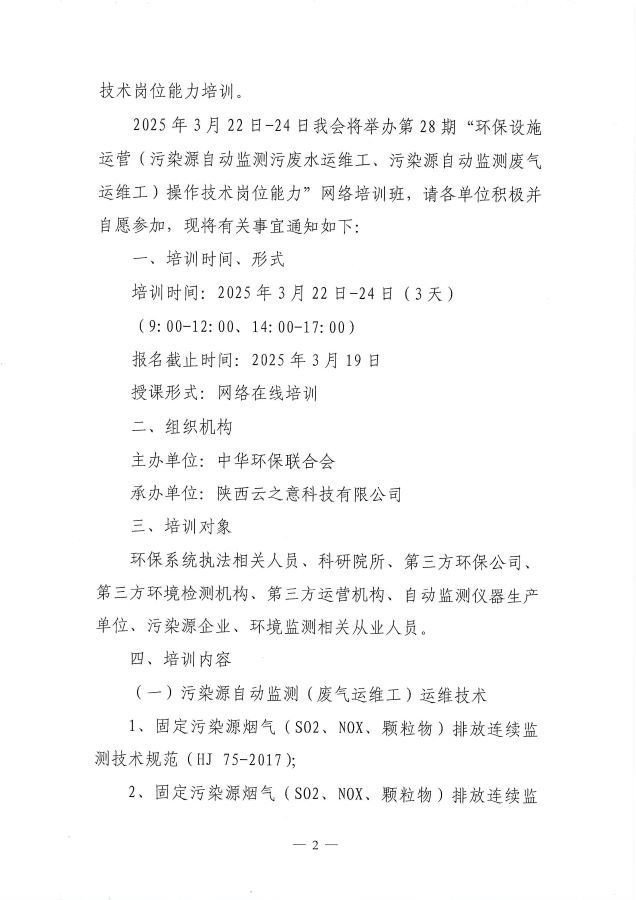 关于举办第28期“环保设施运营(污染源自动监测污废水运维工、污染源自动监测废气运维工)操作技术岗位能力”网络培训班的通知