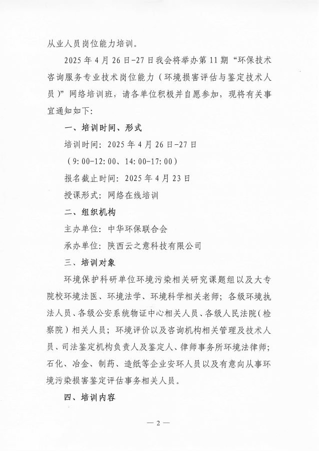 关于举办第11期“环保技术咨询服务专业技术岗位能力(环境损害评估与鉴定技术人员)网络培训班”的通知