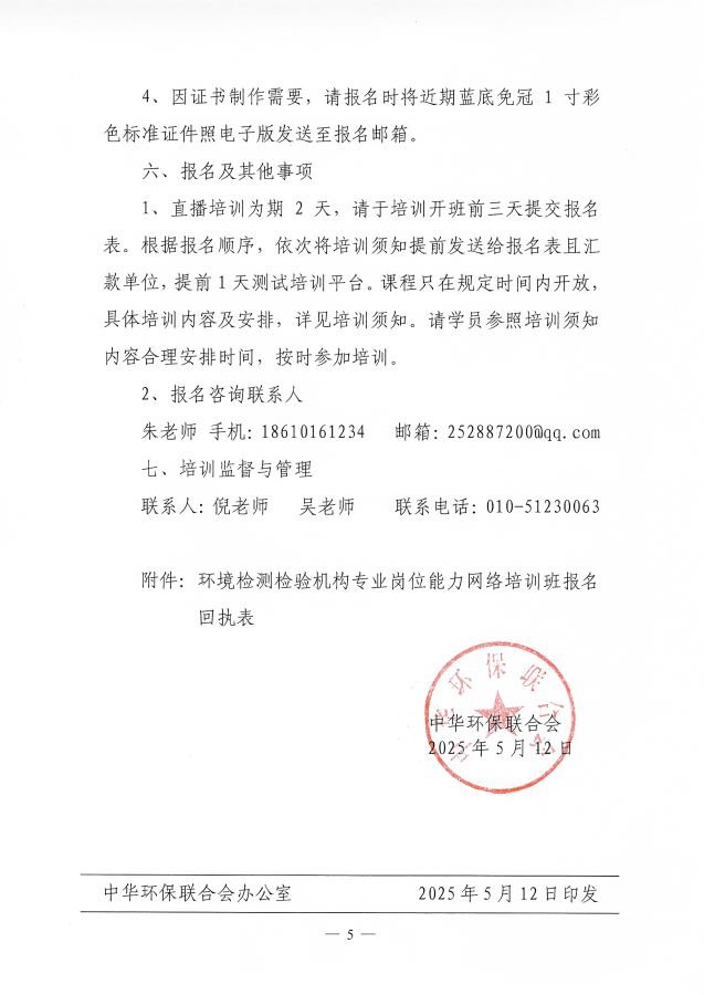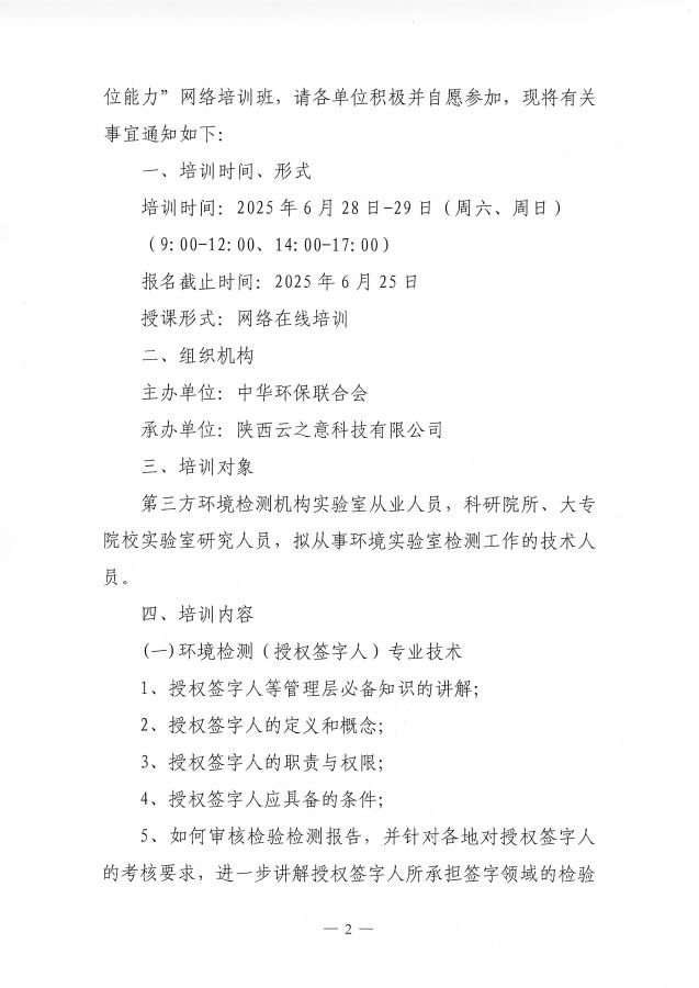 关于举办第19期“环境检测检验机构(授权签字人、质量负责人、技术负责人)专业岗位能力”网络培训班的通知