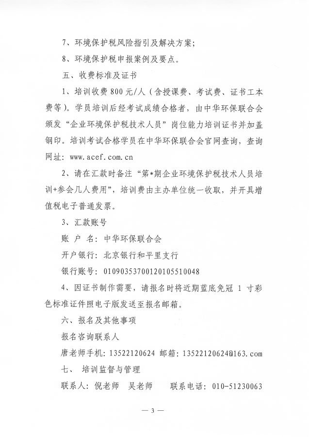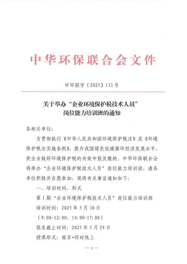 关于举办“企业环境保护税技术人员”岗位能力培训班的通知
