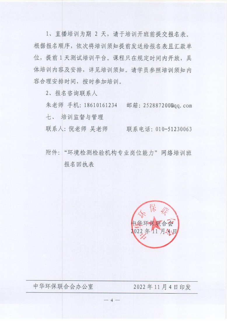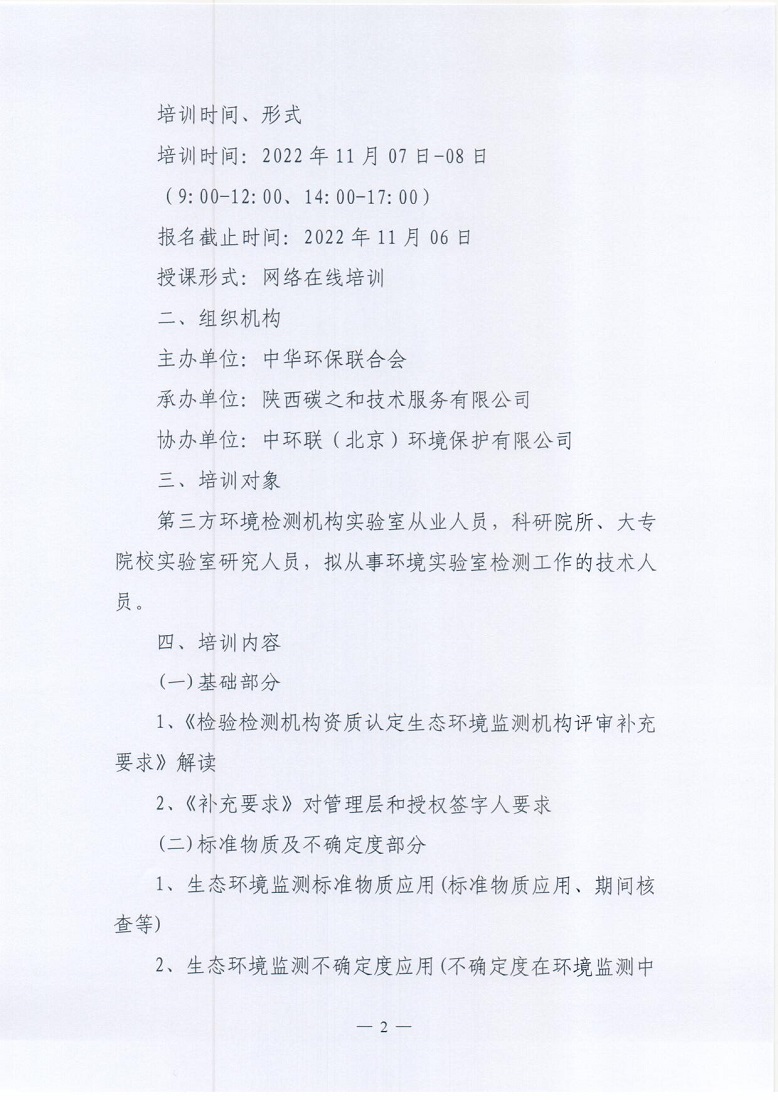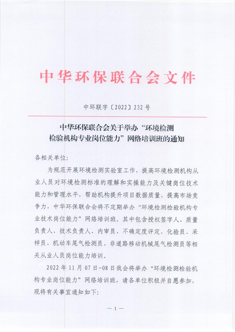 关于举办“环境检测检验机构专业岗位能力”网络培训班