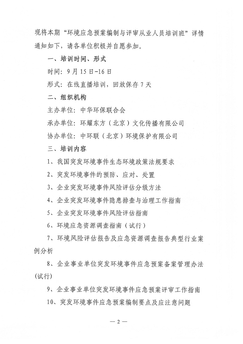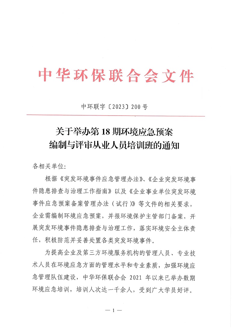 关于举办第18期环境应急预案编制与评审从业人员培训班的通知