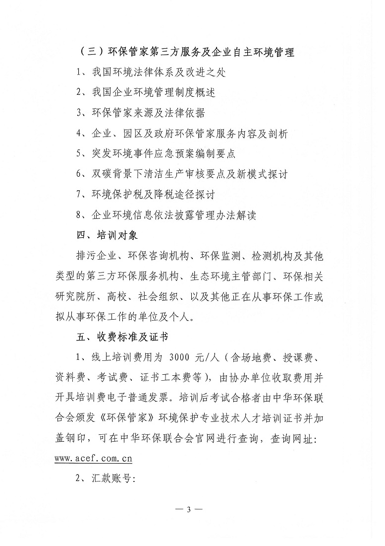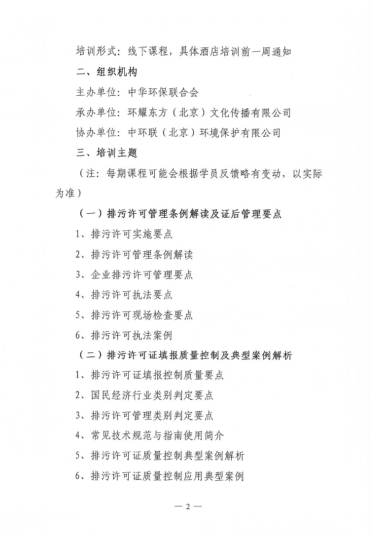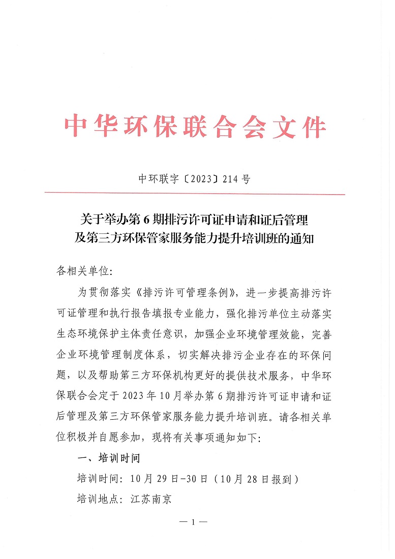 关于举办第6期排污许可证申请和证后管理及第三方环保管家服务能力提升培训班的通知