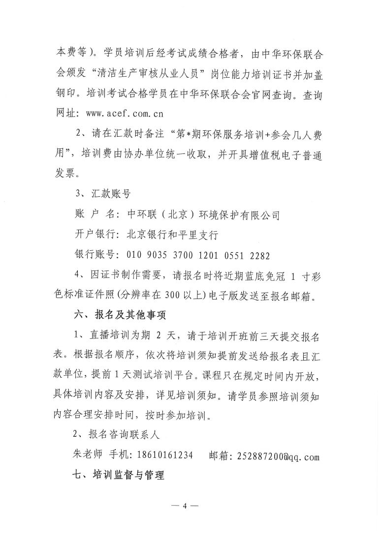 关于举办第6期“环保技术咨询服务(清洁生产审核从业人员)专业技术岗位能力”网络培训班的通知