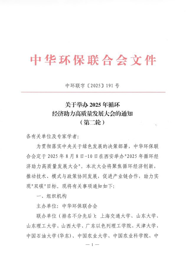 关于举办2025年循环经济助力高质量发展大会的通知(第二轮通知)