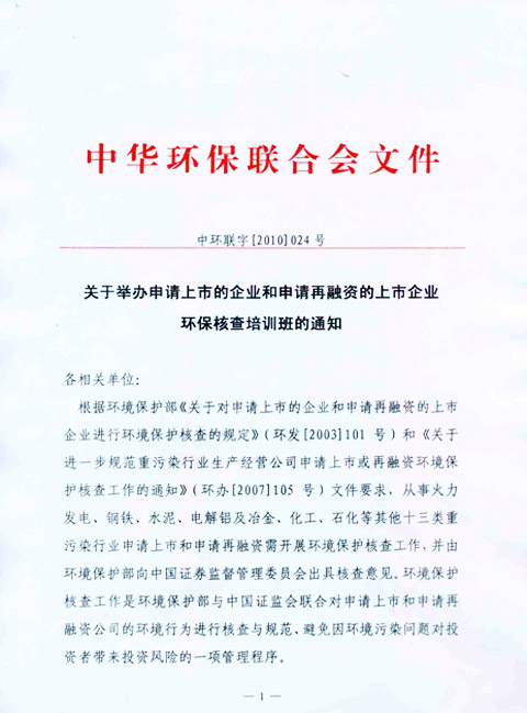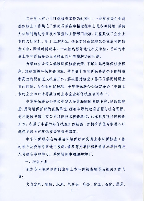 关于举办申请上市的企业和申请再融资的上市企业环保核查培训班的通知
