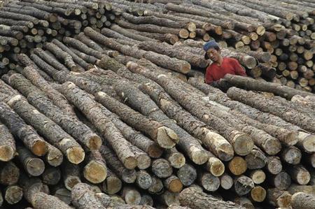 在山西省长治市木材市场工作的一名工人。