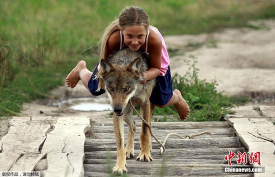 原标题:另类俄罗斯家庭将狼作为宠物 10岁女孩骑狼狂奔