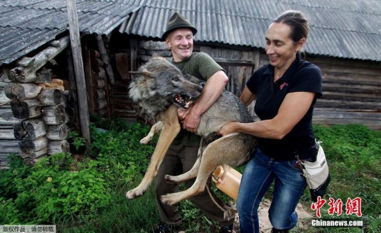 另类俄罗斯家庭将狼作为宠物 10岁女孩骑狼狂奔(图)