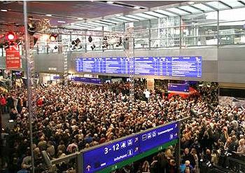 图片说明:维也纳市民涌入刚开幕的维也纳中央火车站参观