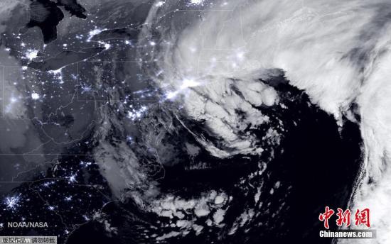 当地时间1月28日上午1点45分,美国宇航局的地球观测卫星“苏奥米-NPP”拍摄到的“朱诺”风暴袭击美国东海岸的气象图,“朱诺”为部分地区带来了60厘米的降雪。