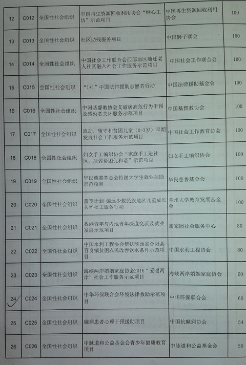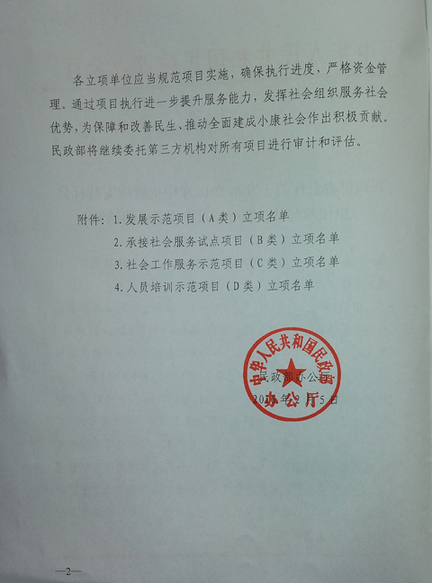 2016年中央财政支持社会组织示范项目是中央财政通过民政部部门预算安排的专项用于支持社会组织参与社会服务活动和能力建设,预算总资金为2亿元左右。主要资助开展四类项目,即发展示范项目(A类)、承接社会服务试点项目(B类)、社会工作服务示范项目(C类)和人员培训示范项目(D类)。